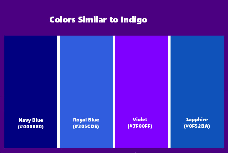 Several colors share characteristics with indigo but differ slightly in tone or warmth. These include: